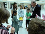 Am 23.04.2025 war Frau Hamburg, niedersächsische Kultusministerin in unserer "Sprechstunde" in der KunstschulPRAXIS. Nach einem gemeinsamen Gespräch mit den Kunstschüler*innen wurde von diesen eine kreative Behandlung der jeweiligen Anliegen entworfen und ein speziell dafür entwickeltes künstlerisches Hilfsmittel gestaltet. Das sind z.B.: spezielle Sehhilfen für die Zukunft, besondere Assistenzsysteme zur gerechten Verteilung, Sichtgeräte zur Erhöhung der Wertschätzung usw. Die daraus entwickelte "künstlerische Hausapotheke" wurde am 10.09.2025 während der Plenumswoche persönlich von einer Kindergruppe an Frau Hamburg und an Herrn Weil im Landtag übergeben.