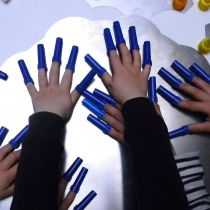 Im Workshopangebot "Expeditionen ins Einfallsreich" für Kindergruppen aus Kita und Grundschule kommen die ungewöhnlichen Materialien aus der Sammlung zum Einsatz. Beim gemeinsamen Experimentieren werden eigene Objekte und Aktionen entwickelt und umgesetzt.